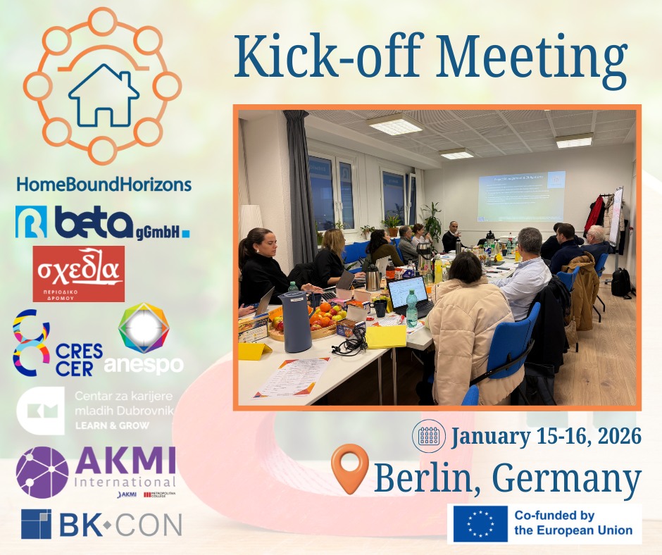 The HomeBound Horizons (an Erasmus+ co-funded project) team gathered at Beta gGmbH for our official kick-off meeting. Our goal is to empower homeless individuals to overcome adversity through comprehensive training and community support.